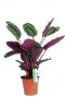 KamerplantDe Calthea Medallion (pauwenplant) heeft zijn naam te danken aan zijn ronde prachtige bladeren. Bij deze kamerplant is de bovenkant van het blad groen met een mooi lichtgroen patroon. De onderkant van de bladeren zijn paars rood van kleur, dit maakt deze plant een echte eyecatcher.