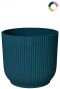 Deze leuke blauwe kunststof bloempot is van het merk Elho. Deze plantenbakken worden duurzaam geproduceerd met behulp van 100% schone windenergie. De nieuwe serie Vibes Fold heeft ronde vormen en een gestreept patroon en laat je kamerplant perfect uitkomen. Voeg jij deze potten toe aan je interieur?