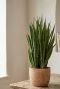 Succulenten zoals deze Sansevieria verbruiken weinig water. Laat de grond daarom uitdrogen voordat de kamerplant opnieuw water krijgt. In de winter zelfs meerdere weken. Hoe verder de vrouwentong van het raam staat, hoe minder water hij verbruikt.